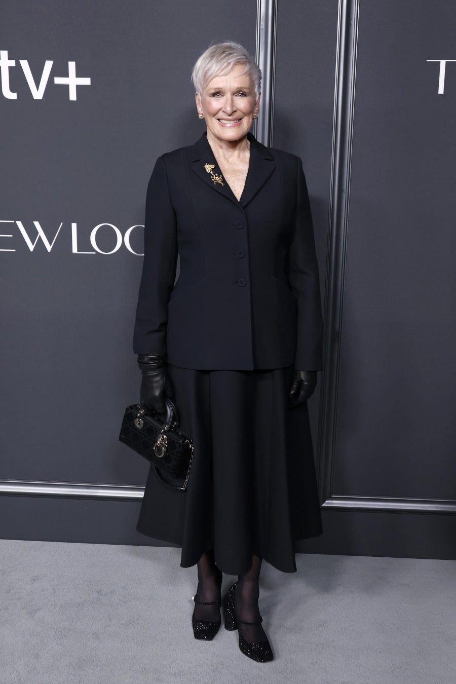 一方、グレン・クローズはブラックのウール&シルクのバージャケットとスカートに「レディ D-ジョイ」バッグやパールの刺繍入りアクセサリーを合わせて、洗練されたコーディネートを完成させました。