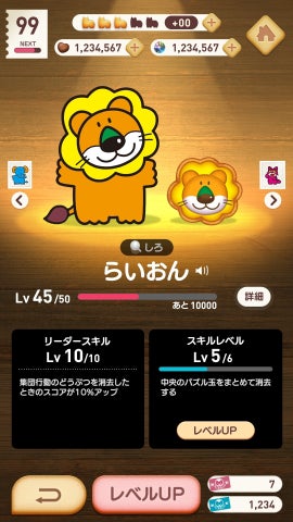 また、育成機能では、どうぶつたちのレベルを上げてスコアをアップさせることができます。