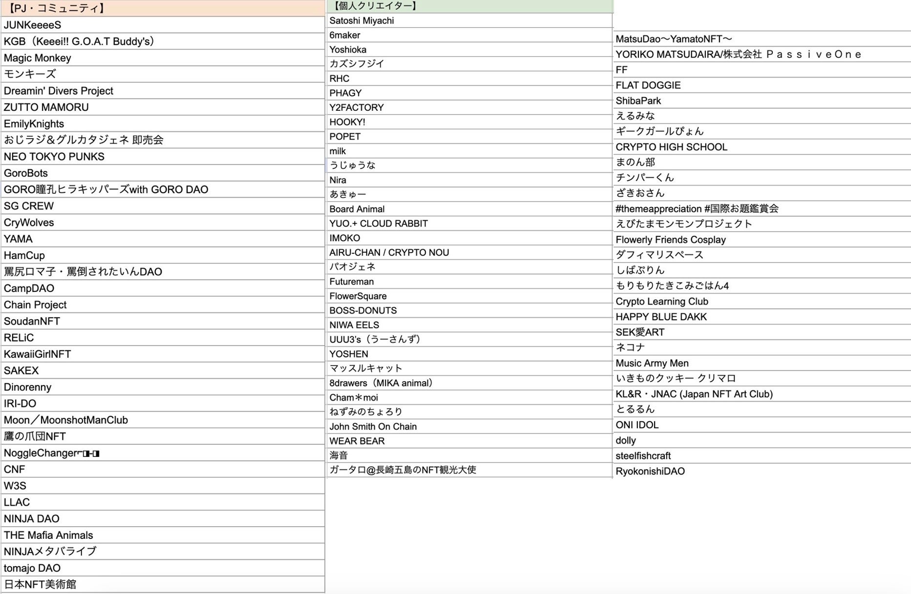 - NFT、クリエイター・プロジェクト、ブロックチェーン開発企業