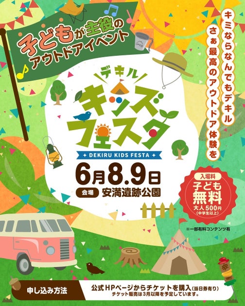 株式会社DEKIRU WORKSが主催する『デキルキッズフェスタ』は、子供たちの外で遊ぶ時間が減っている問題や自己肯定感の低下などに焦点を当て、アウトドアの楽しさを伝えるだけでなく、防災教育や環境教育、食育、金融教育などの体験活動を通じて「生きる力」を身につけるイベントです。