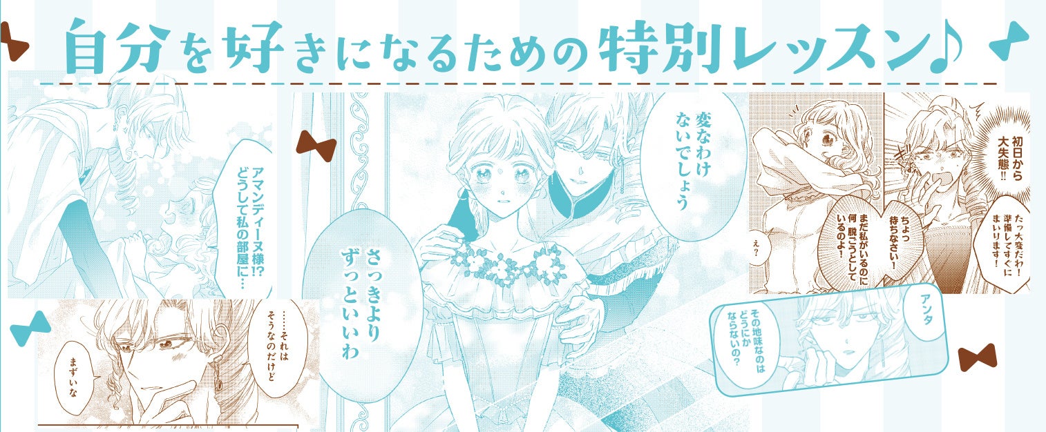 - 三沢ケイ原作のコミカライズ作品で、地味な令嬢ジャネットが美容アドバイザーアマンディーヌからのレッスンを受けながら自信をつけ、初恋を実らせようと奮闘する異世界恋愛コミック