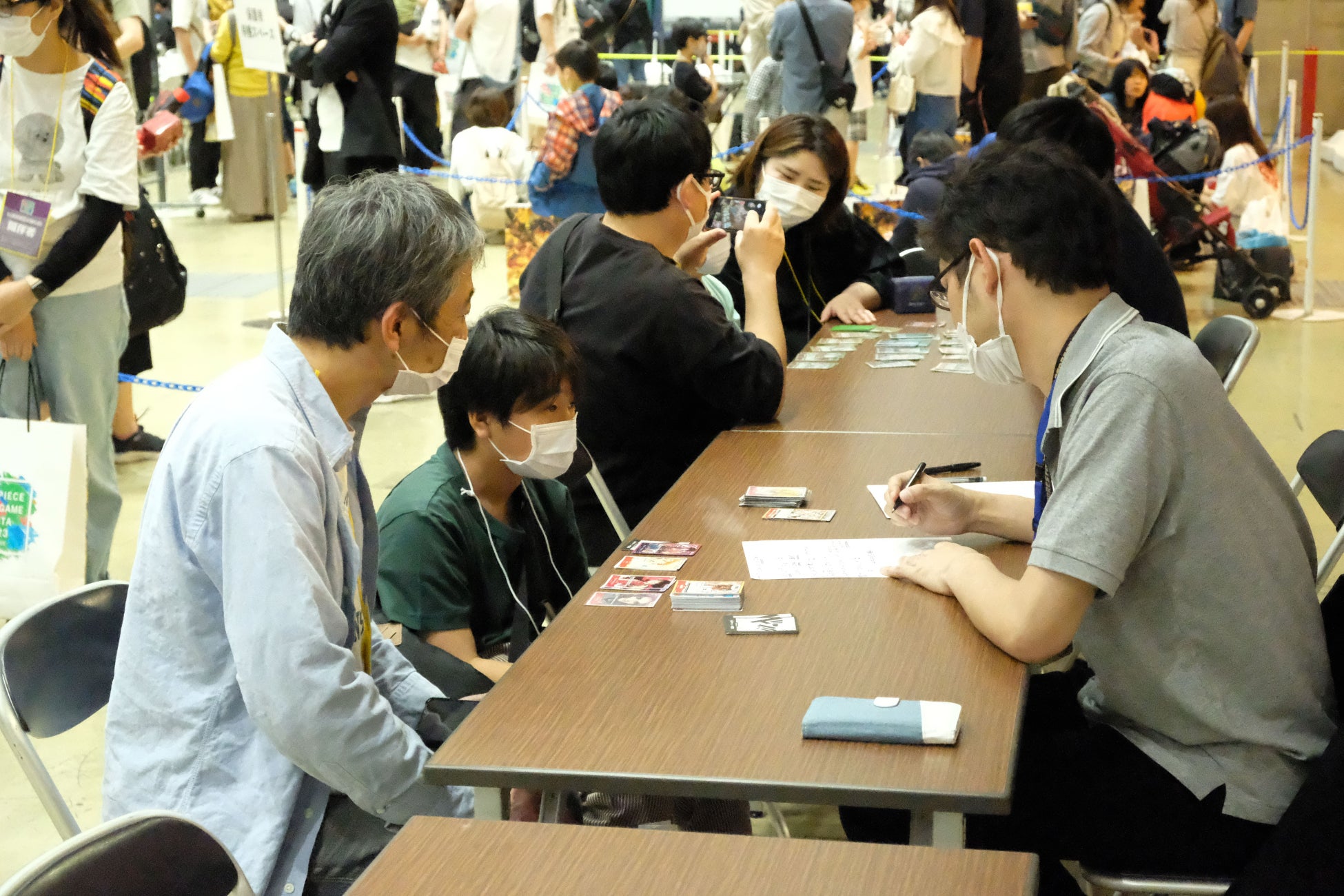 『ONE PIECEカードゲーム』開発者によるデッキの相談コーナーで、デッキ構築のアドバイスをもらおうと長蛇の列が形成され、滅多にない開発者直々にデッキを見てもらえる機会に参加者はとても満足した様子でした。