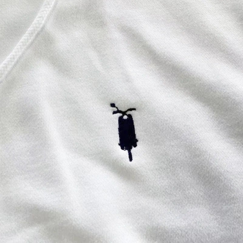 成田空港で販売されるホンダスーパーカブの刺繍パーカーは、ワンポイントのスーパーカブ刺繍が胸元に施されたシンプルなデザインが特徴です。