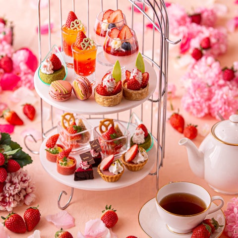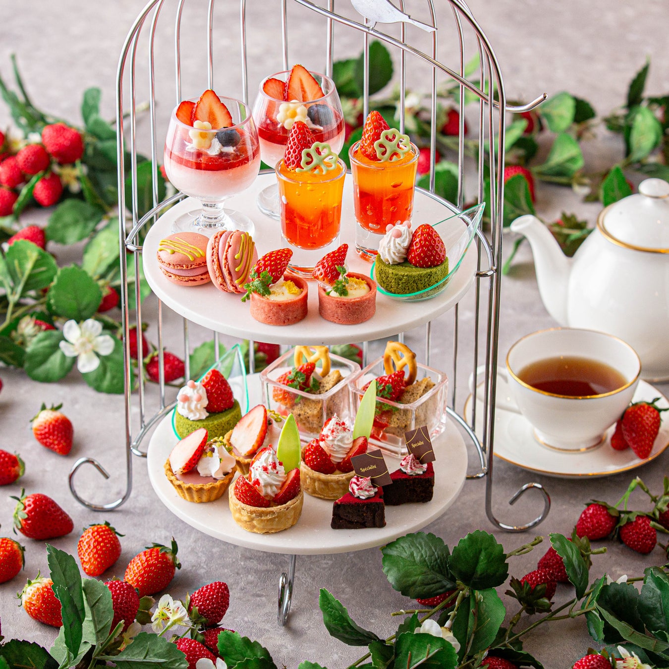 メニューには苺を使用したヴェリーヌやタルト、フィナンシェなどが含まれており、36種類の紅茶やアルコール類も飲み放題です。