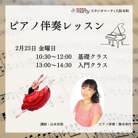 2024年2月23日には、大阪本町スタジオでピアノ伴奏レッスンが開催されます。
