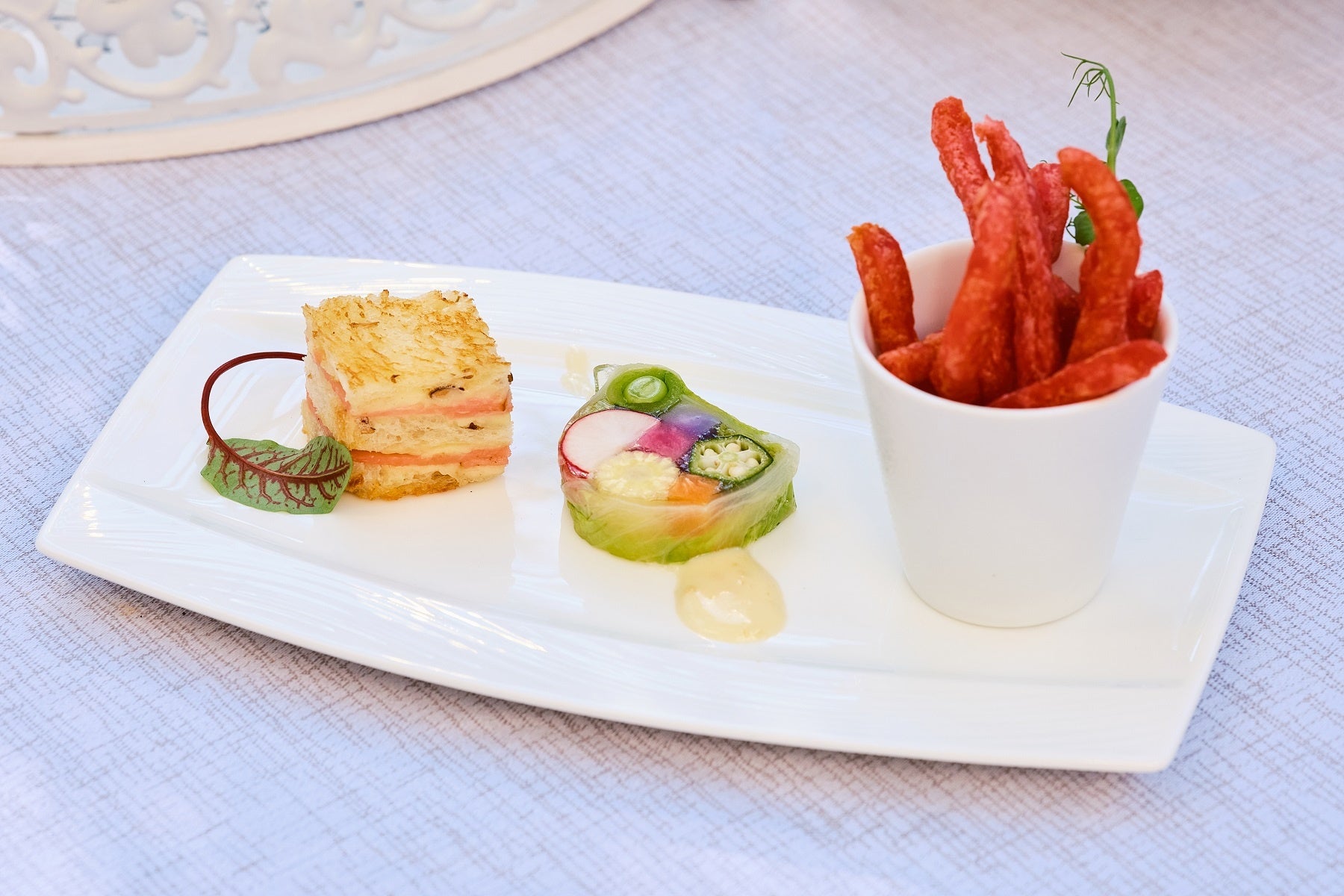 さらに、3種の軽食や焼き立てスコーン、選べるコンディメントと共に、フランスの老舗紅茶ブランド「マリアージュ フレール」の紅茶やフレーバードティーを楽しむことができます。