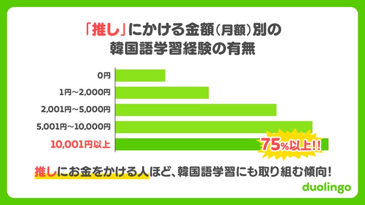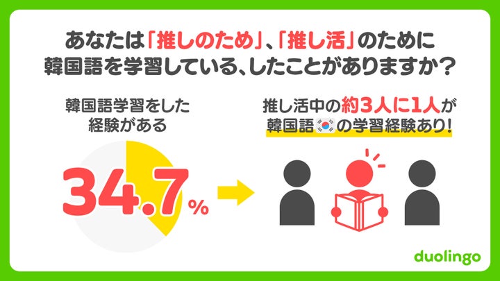 また、推し活と韓国語学習の関係性も調査され、推しのために韓国語を学習している人が約3人に1人いることがわかりました。