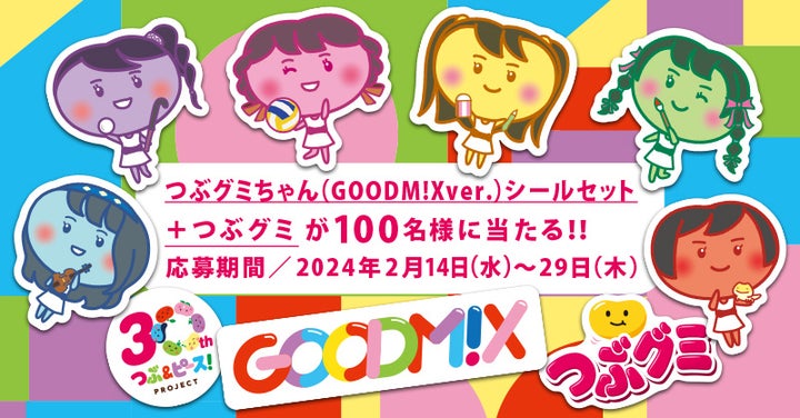- 限定シールセット、つぶグミ商品、GOODM!Xのオリジナルソング「カモン・ミックス!」