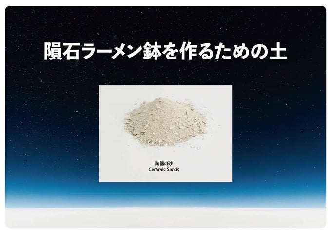 さらに、2025年の大阪・万博出店を目指し、宇宙から帰還した材料で作られた「隕石ラーメン鉢」を展示する予定です。