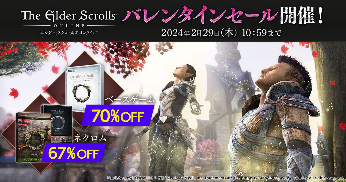 • バレンタインセール:「エルダースクロールズオンライン」のベースゲームが70%OFF、チャプター「ネクロム」も67%OFF