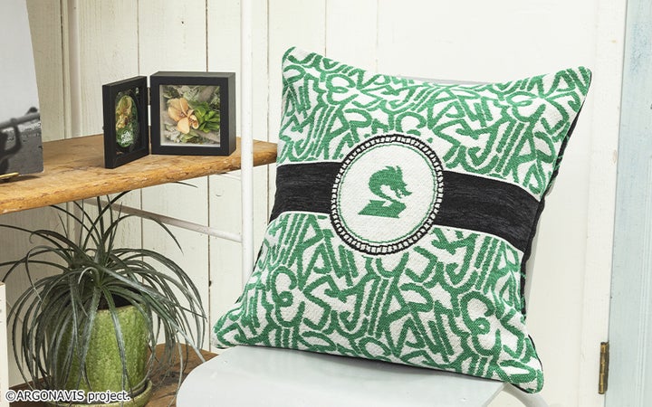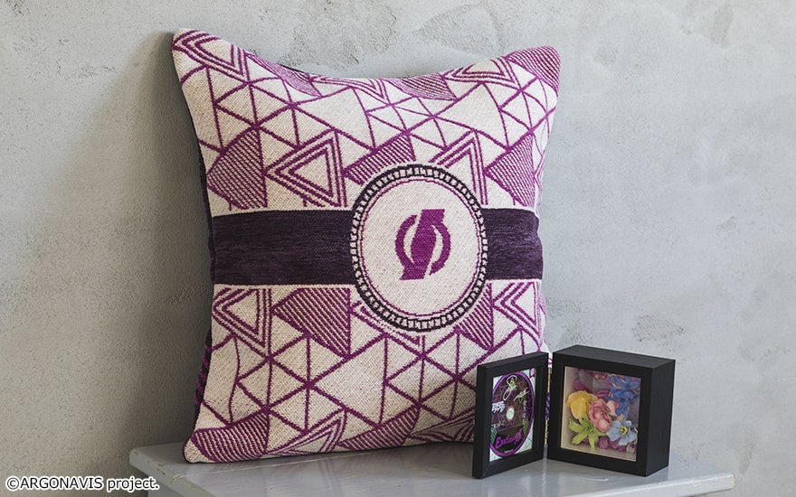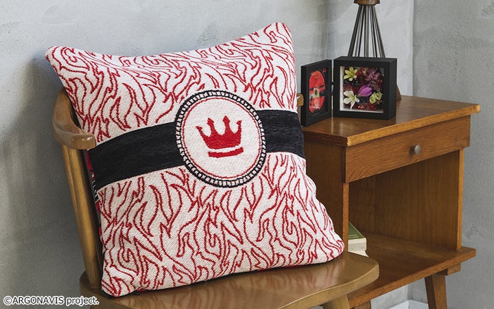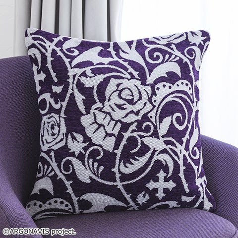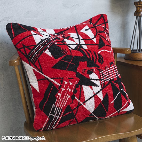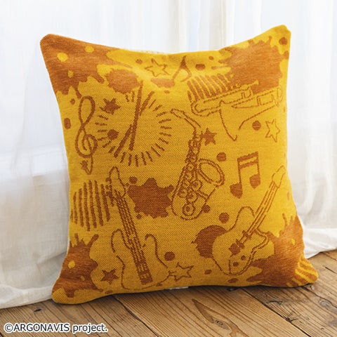 クッションカバーは各バンドをイメージした高品質なゴブラン織りで、バンドモチーフが表側に、各メンバーをイメージした柄が裏側にあります。