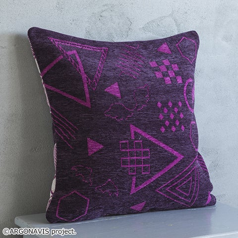 - クッションカバーは各バンドをイメージしたゴブラン織りで、バンドモチーフが表側に、各メンバーをイメージした柄が裏側にあります