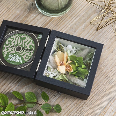 - フラワーフレームは2面フレームで、花材を組み合わせたフラワーアレンジが特徴