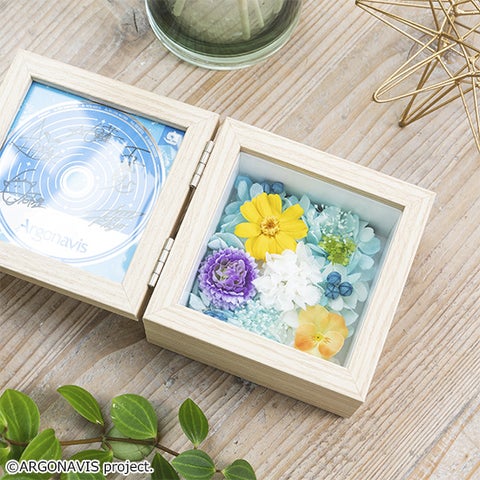 フラワーフレームは2面フレームで、花材を組み合わせた美しいフラワーアレンジが特徴です。