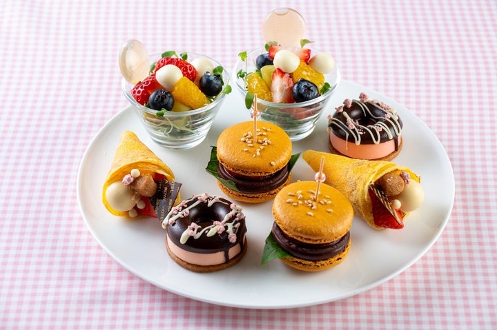 後半のテーマは「ピクニック」で、ハンバーガー型のマカロンやドーナツ型のタルトショコラ、クレープ、ブランマンジェなど、見た目も可愛らしいスイーツが用意されています。