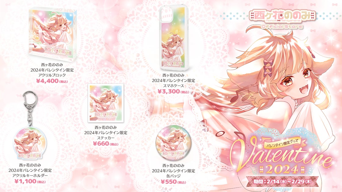 - バレンタイン商品を5種類販売(アクリルブロック、アクリルキーホルダー、ステッカー、缶バッジ、スマホケース)