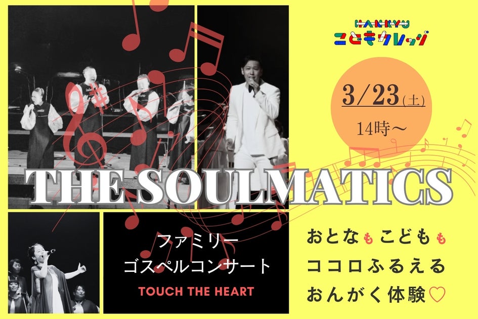 日本を代表するゴスペルグループ「ザ・ソウルマティックス」と阪急うめだ本店のこどもカレッジがコラボレーションし、ファミリーコンサートを開催します。