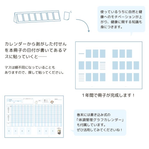 さらに、付属ブックレットに付せんを貼っていくと、1年間で情報満載の冊子が完成します。