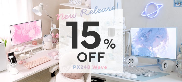 Pixioが新色追加!200Hz対応23.8型Fast IPSパネル採用のゲーミングモニター「PX248WAVE」が可愛いパステルブルーとパステルピンクで登場