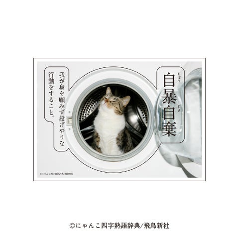 - 13種類のアイテムで構成されており、猫の写真と四字熟語が組み合わさったデザイン