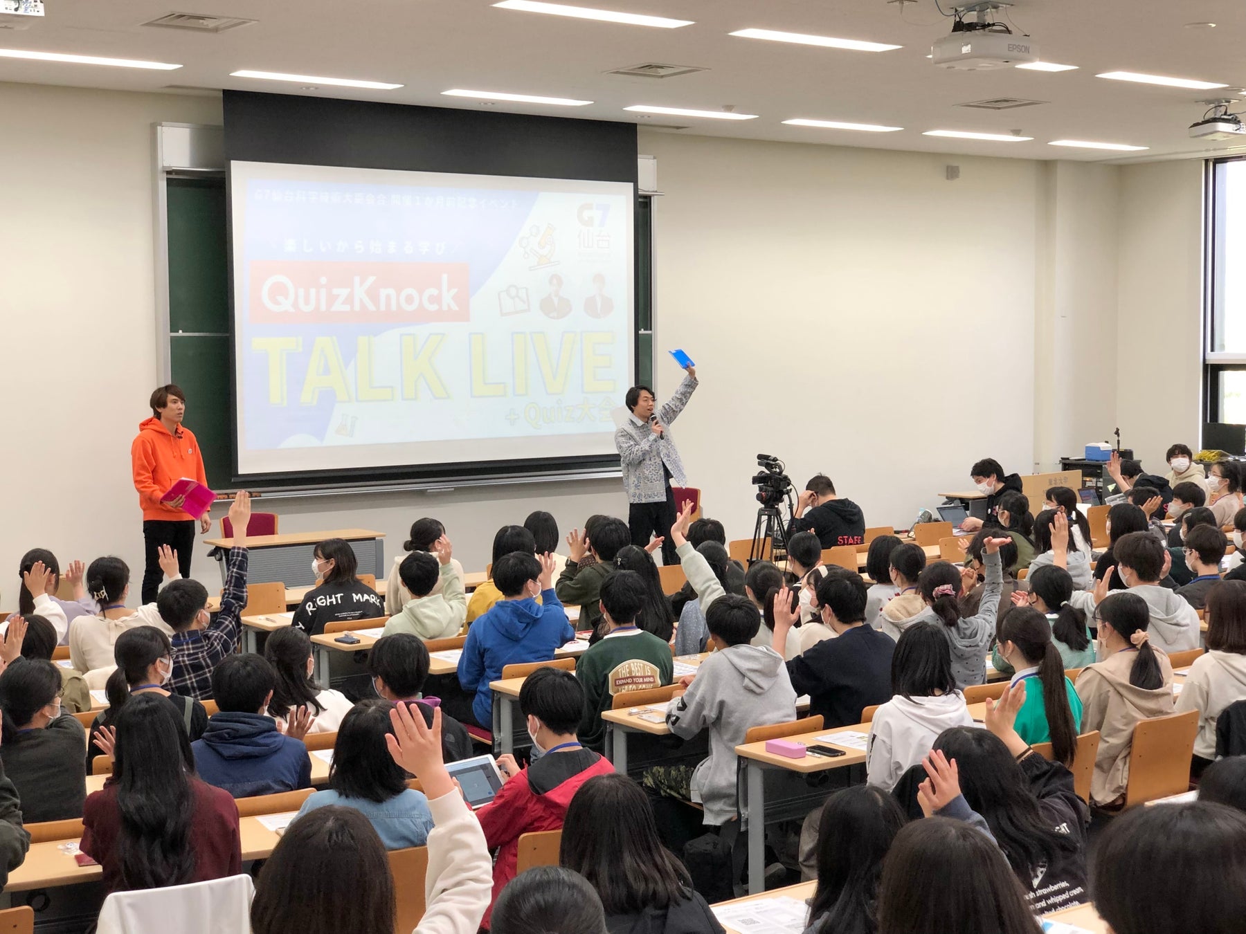 東大クイズ王・伊沢拓司率いるQuizKnockは、G7仙台科学技術大臣会合とのコラボイベント『伊沢拓司・須貝駿貴が語る「科学」とクイズで学ぶ「G7」』を4月16日(日)に東北大学川内南キャンパスで行いました。