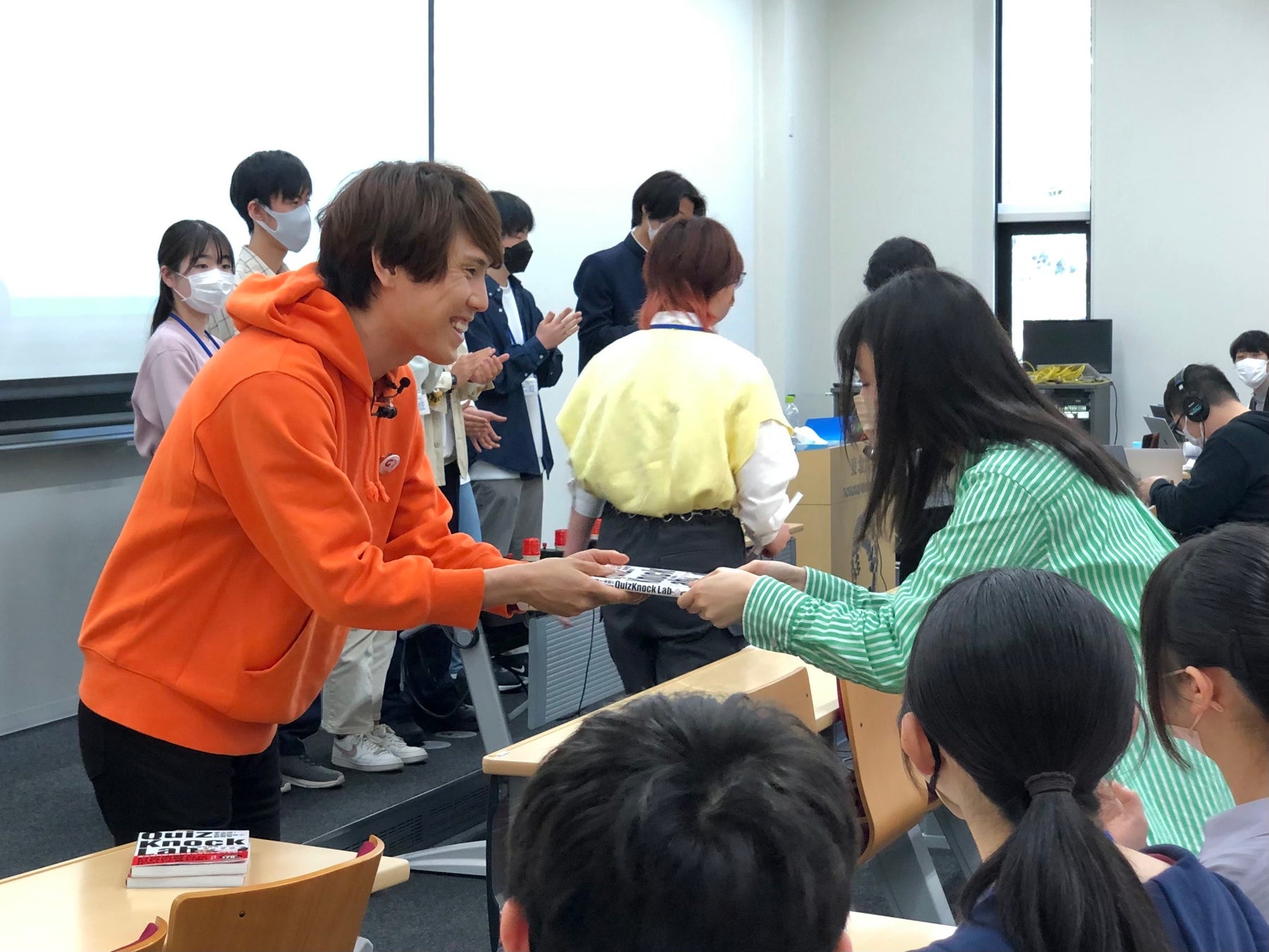 出題された10問のクイズは、あらかじめ参加者から募集し、QuizKnockが選定・改題したもの。クイズのアイデアが採用された10名には、須貝のサイン入り書籍『東大流! 本気の自由研究で新発見 QuizKnock Lab』が贈られました。