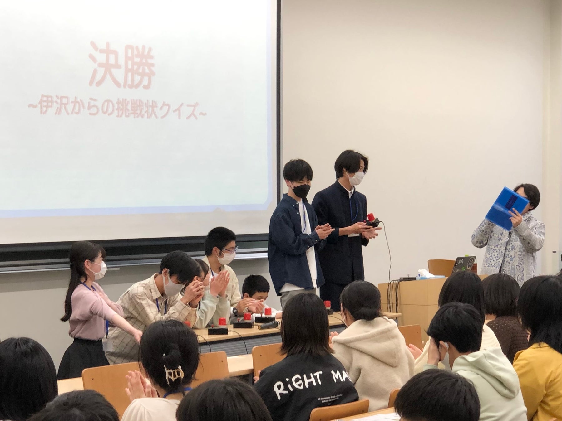 決勝戦では「伊沢からの挑戦状クイズ」として、伊沢自らが制作した問題が全7問出題。「広大な森林で生産されており、二酸化炭素の吸着にも役立っている、カナダの名産品である甘い蜜は何でしょう?」や「昨年10月にはNASAによって「これ」を調査するチームが立ち上げられた、日本語では「未確認飛行物体」と呼ばれるものは何?」など、G7参加国にまつわる問題が出題されました。見事勝ち抜いた優勝者には、伊沢のサイン色紙が贈られました。