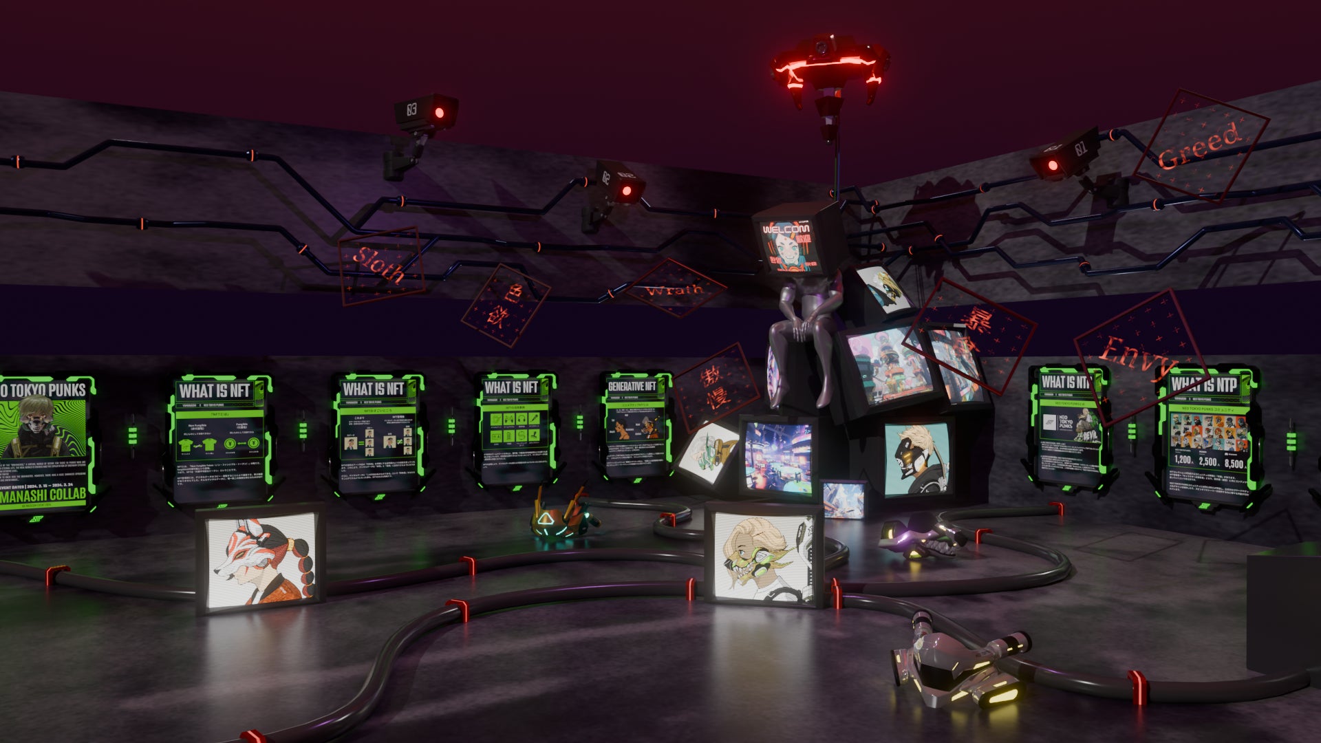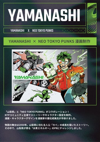 展示では、NEO TOKYO PUNKSの仮想空間で2050年の世界観を体感しながら、NFTや山梨県の水素エネルギーについて紹介します。