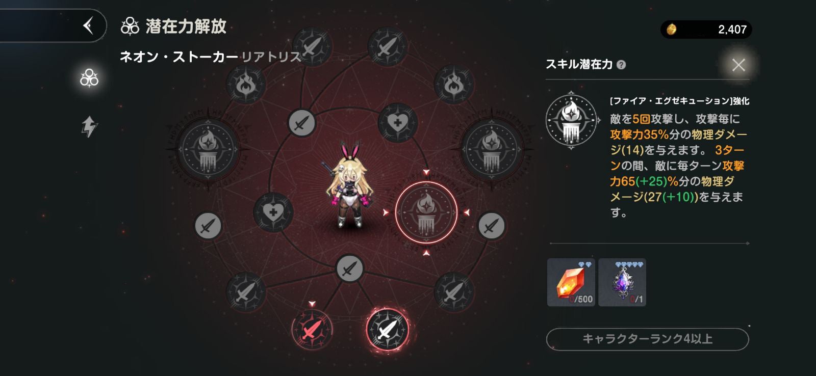 潜在力を開放することで、ステータスやスキル効果が向上し、他のコスチュームにも影響を与えることがあります。
