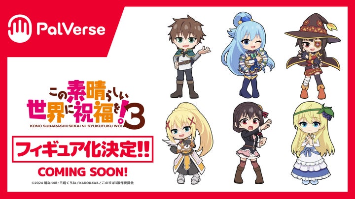 今後の新規参戦タイトルとしては、「PalVerse この素晴らしい世界に祝福を!3」や「PalVerse Palé. 【推しの子】」、「PalVerse モブサイコ100 Ⅲ」、「PalVerse チェンソーマン」、「PalVerse Palé. チェンソーマン」、「PalVerse ブルーロック」、「PalVerse Palé. 狼と香辛料」が予定されています。