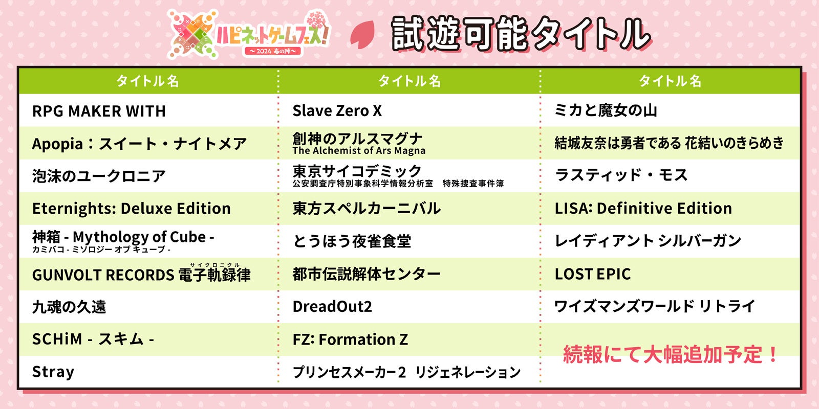 株式会社ハピネットは、2024年3月16日に「ハピネットゲームフェス!~2024 春の陣~」を開催します。