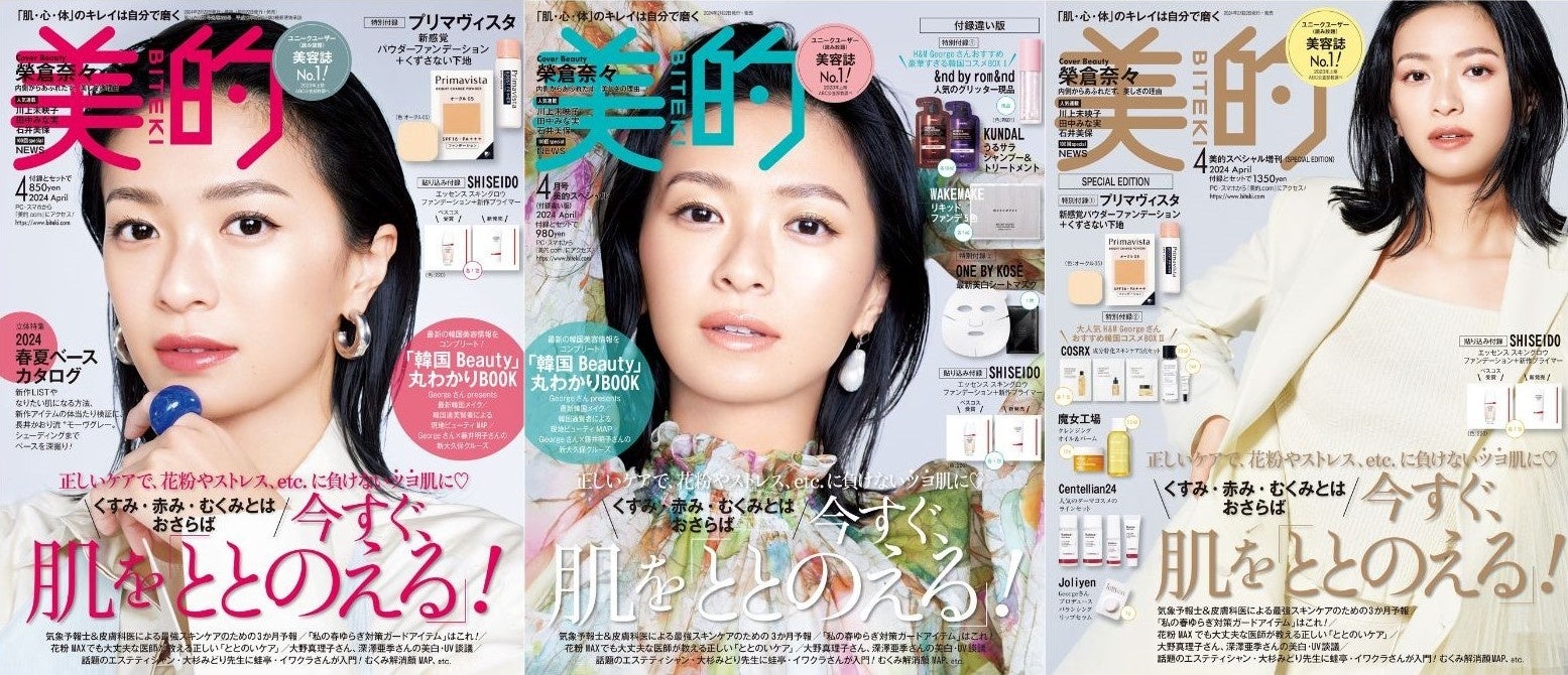 『美的』4月号では、榮倉奈々さんが3つの異なる表紙を飾ります。