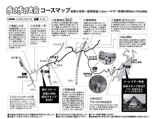 このイベントでは、最寄駅の佐貫町駅から約9kmの道のりを歩いてマザー牧場を目指します。