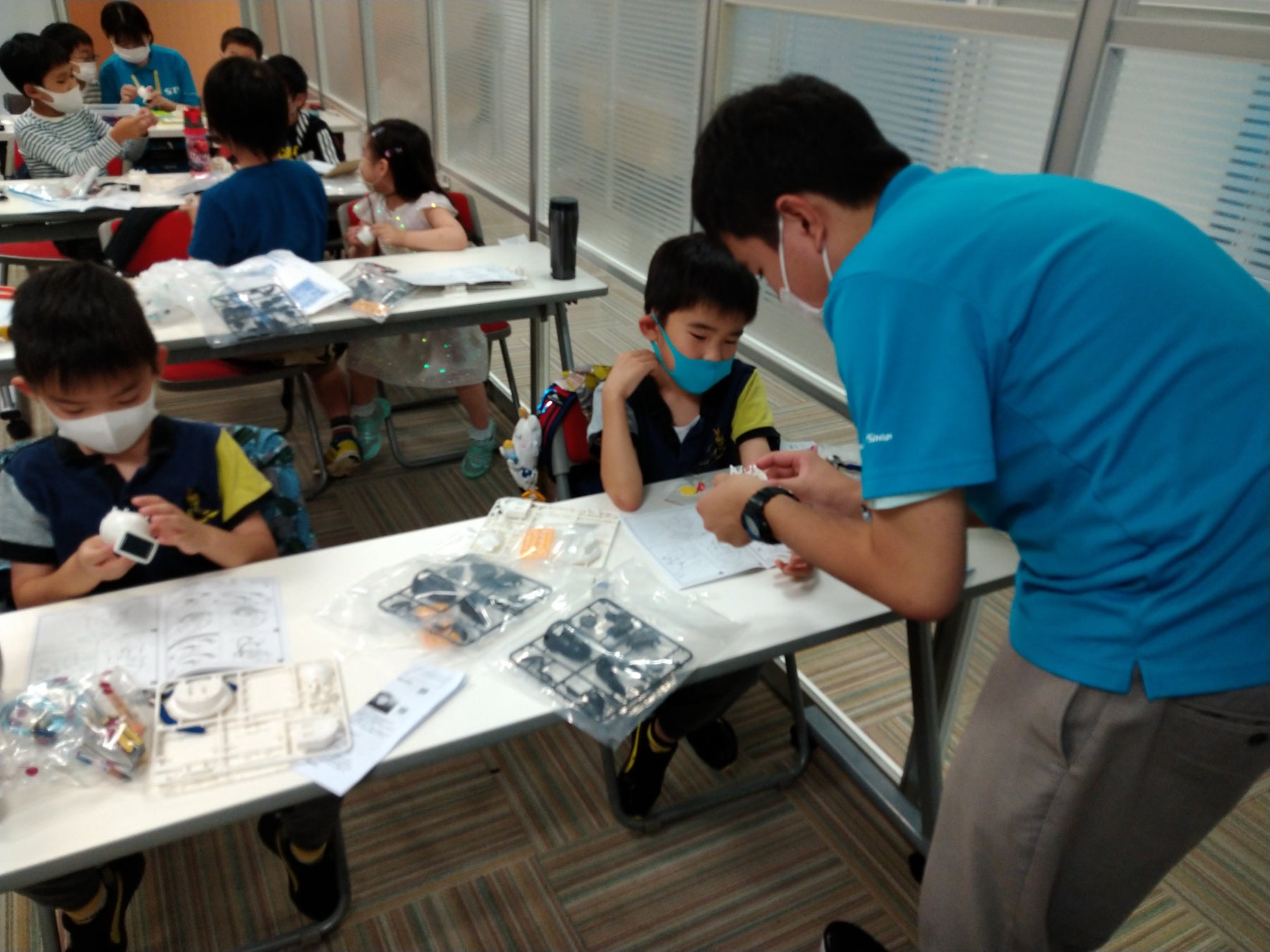 - ロボット作りの説明から始まり、パーツ確認、ロボット作り、動作確認とロボット遊びが行われる