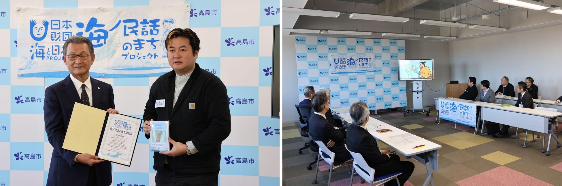 • 「海ノ民話のまちプロジェクト」説明、認定証アニメパッケージ贈呈