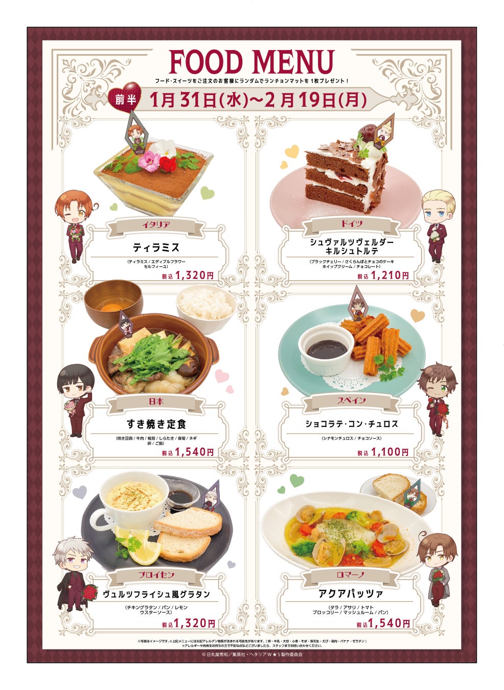 - アニメ「ヘタリア World★Stars」Valentine’s Cafeで食事やドリンク、オリジナルグッズの購入を楽しめる