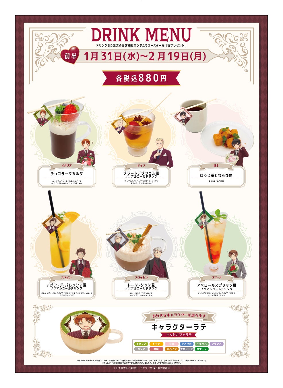 - 株式会社faveが展開するコラボカフェで「ヘタリア World★Stars」Valentine’s Cafeが開催される