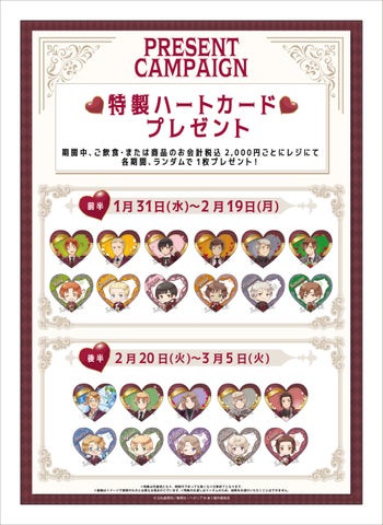 - メニューの注文や事前予約で限定のバレンタインテーマのイラストやノベルティーがもらえる