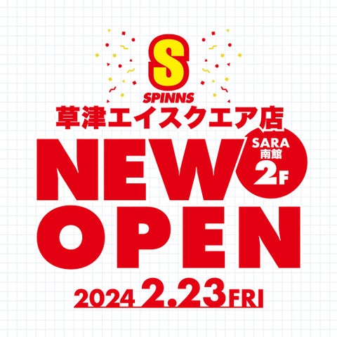 - 「SPINNS」の新店舗が2024年2月23日に滋賀県草津エイスクエアにオープン