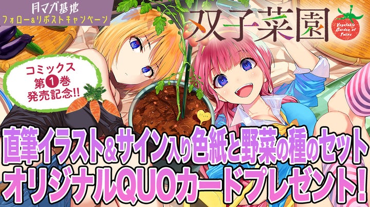 この発売を記念して、作者の夢乃狸先生直筆のイラスト&サイン入り色紙と、作品にちなんだ野菜の種のセット、または作品オリジナルのQUOカードが当たるキャンペーンを開催中です。