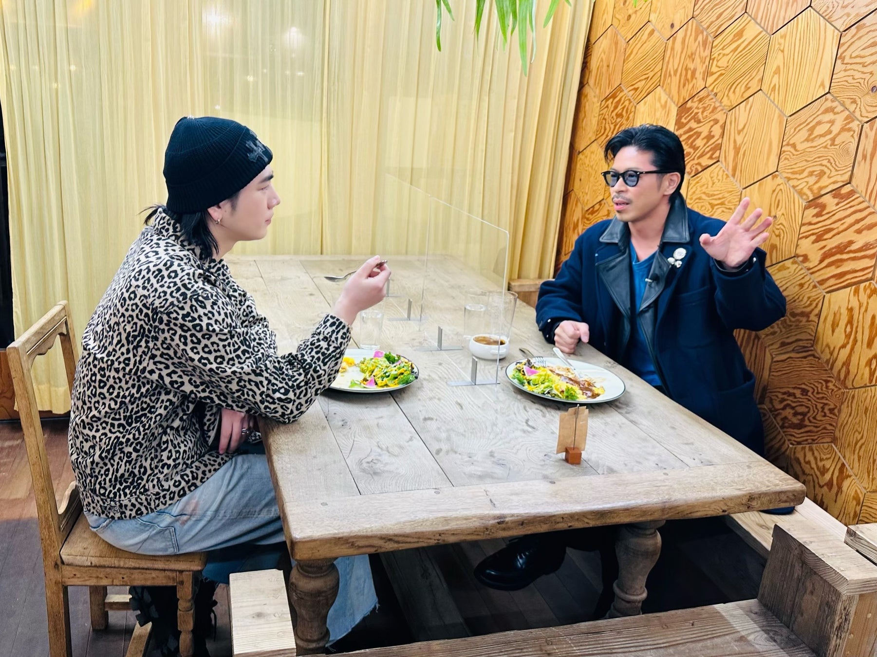 MATSUとØMIは注文したオムライスを食べながらサシトークを展開。ØMI曰く、「メンバーとは岩ちゃん(岩田剛典)と飲む」と言い、MATSUは岩田との関係を深掘り。ØMIは岩田と過ごした年末年始を振り返り、初詣に一緒に行った際のLINEの可愛いやりとりも暴露。MATSUは「これはキュンキュンする」と驚いていた。