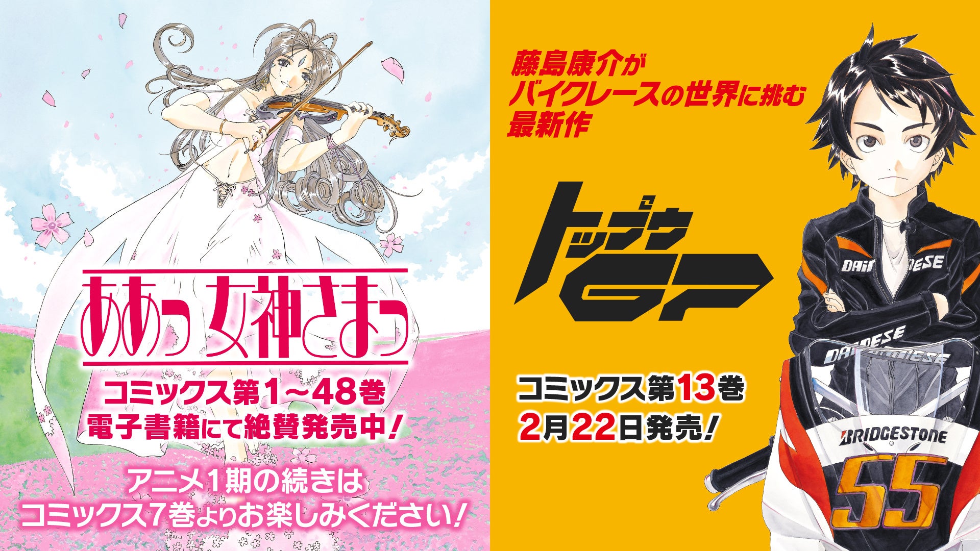 藤島康介先生の最新作「トップウGP」第13巻が2月22日に発売されます!それを記念して、YouTubeチャンネル「フル☆アニメTV」でTVアニメ「ああっ女神さまっ」1期全26話+特別編1話が期間限定で無料配信されます。