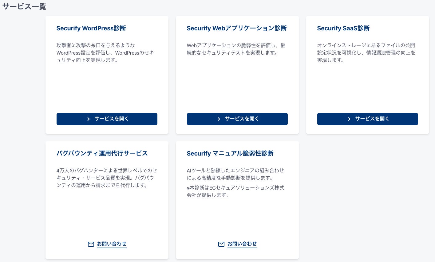 - SecurifyはWebアプリケーション診断やWordPress診断などの機能を提供