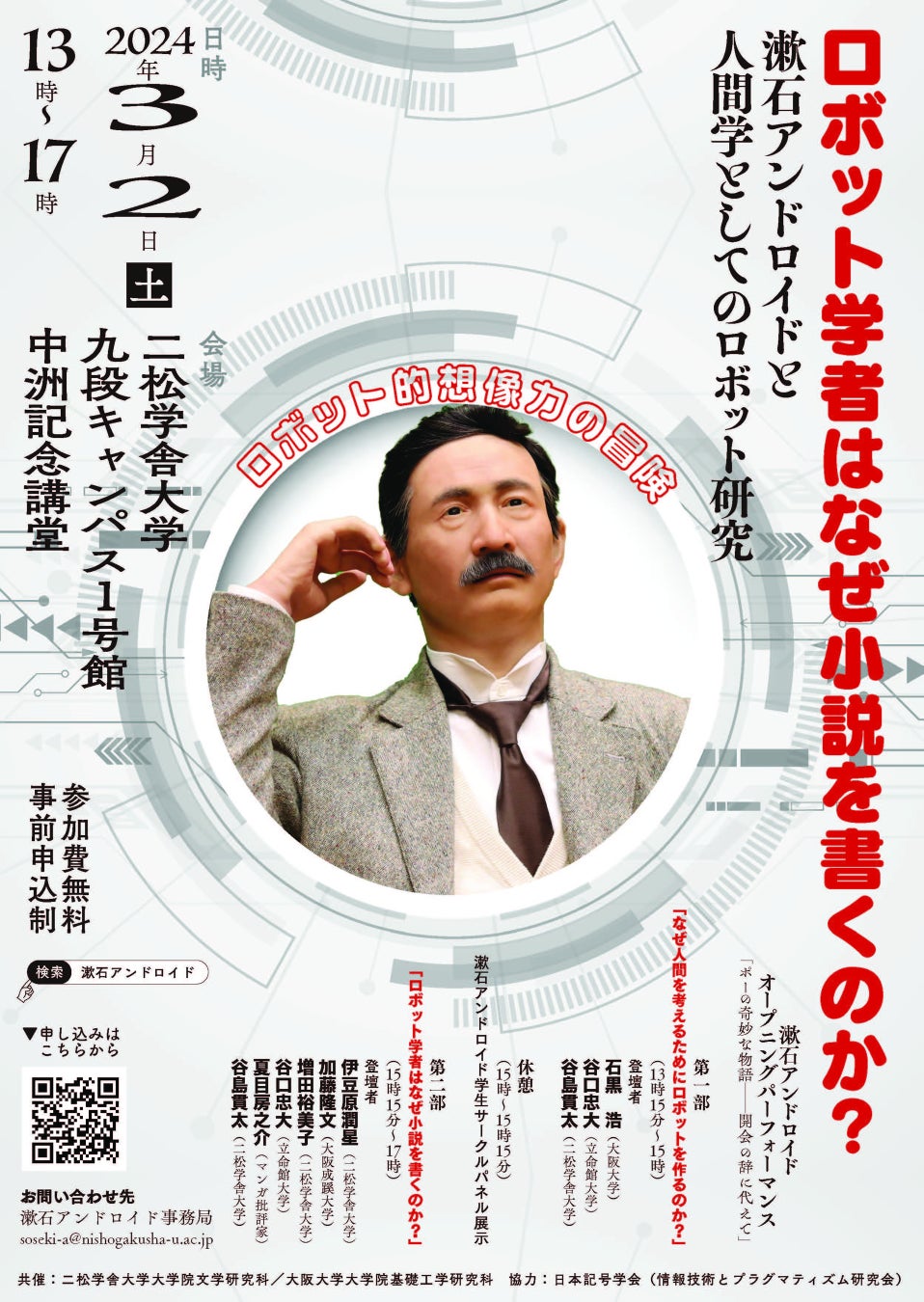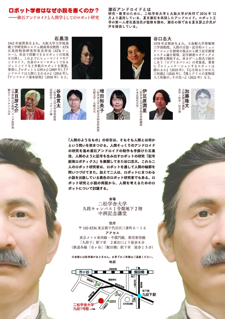 二松学舎大学大学院文学研究科と大阪大学大学院基礎工学研究科が共同で開催する漱石アンドロイドシンポジウムがあります。