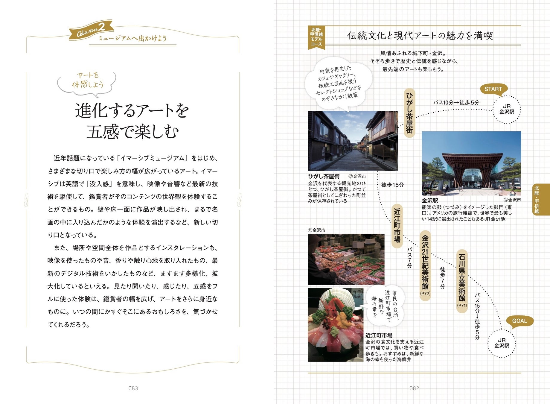 さまざまなモデルコースやミュージアムコラムも紹介されており、旅行のアクセントとして楽しめます。