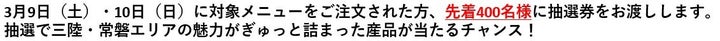 - 2024年3月9日と10日に抽選券配布と抽選会が行われる