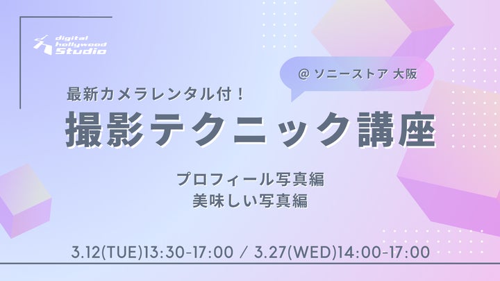 - プロフィール撮影や美味しい写真の撮り方のテクニックも学べる