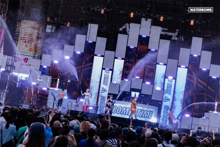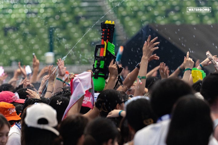 WATERBOMBは、韓国で人気のある音楽フェスで、観客が水鉄砲を使ってチームバトルを楽しむイベントです。