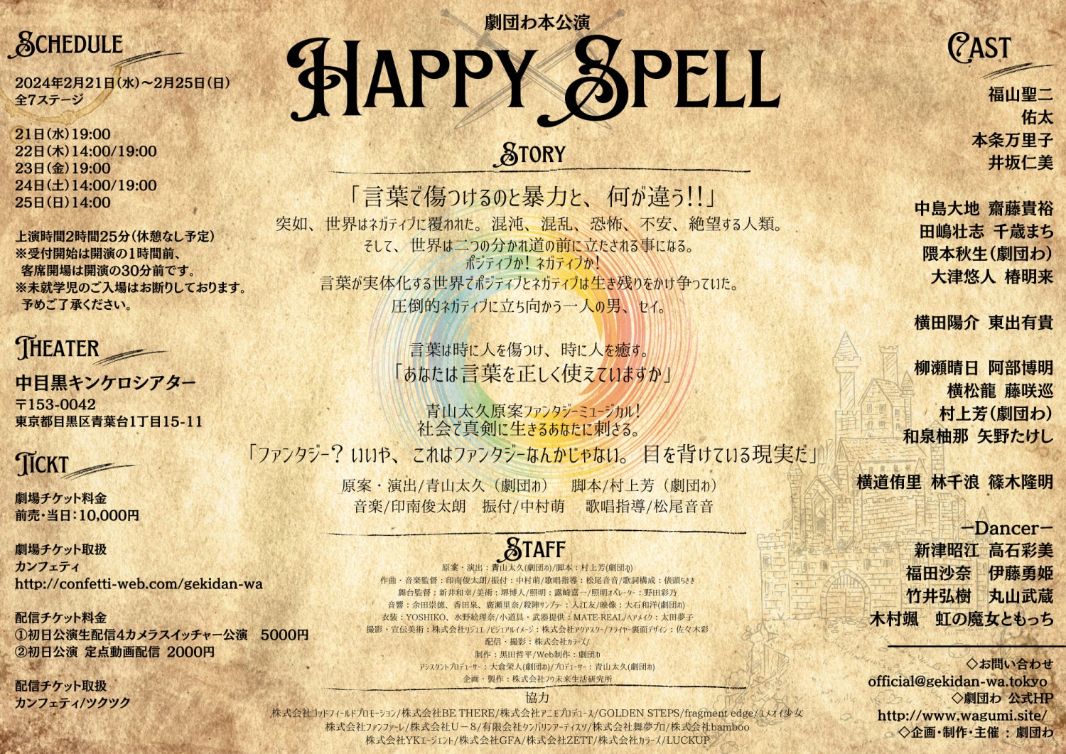 • 劇団わのミュージカル『Happy Spell』のチケット発売中