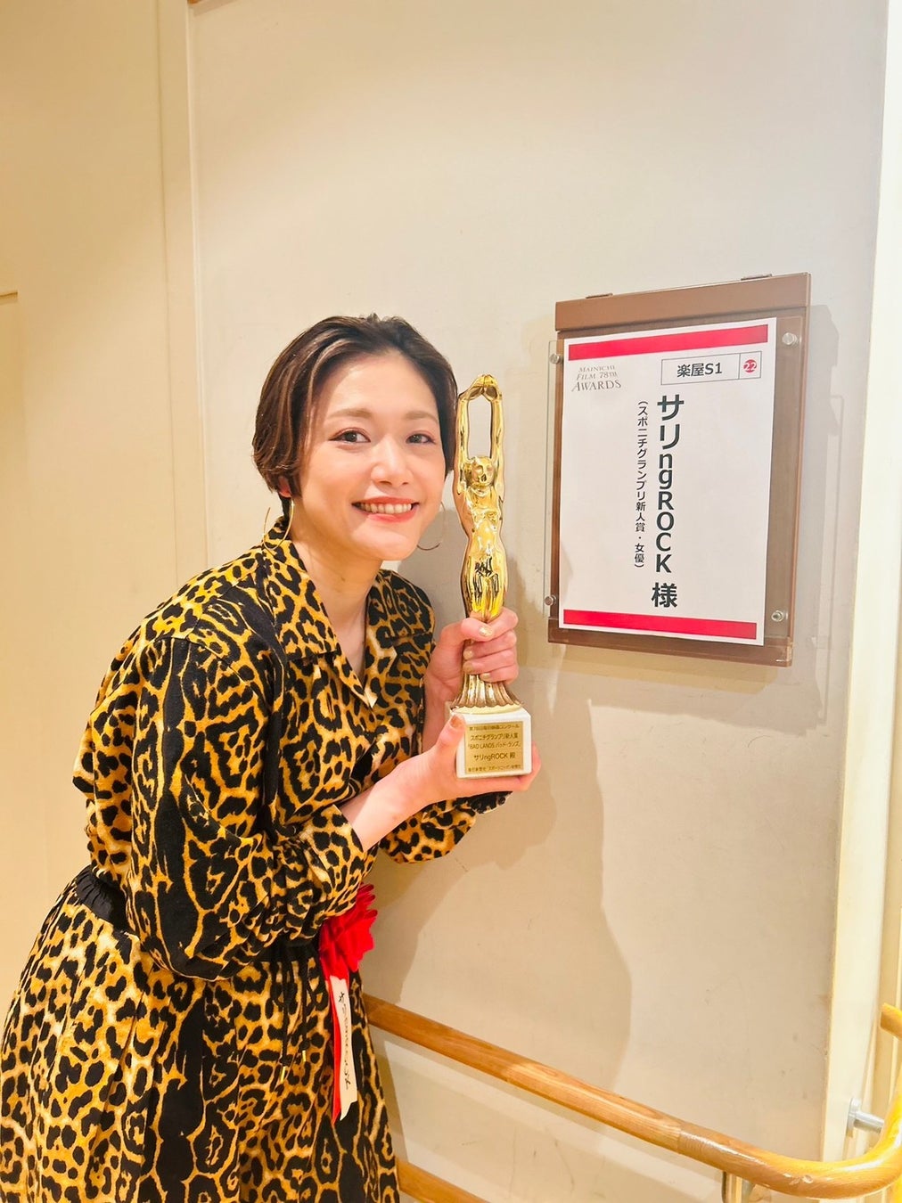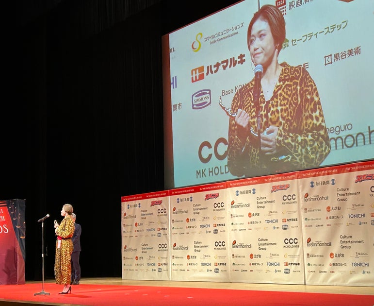 彼女は表彰式でトロフィーを受け取り、原田監督や共演者に感謝の気持ちを述べました。
